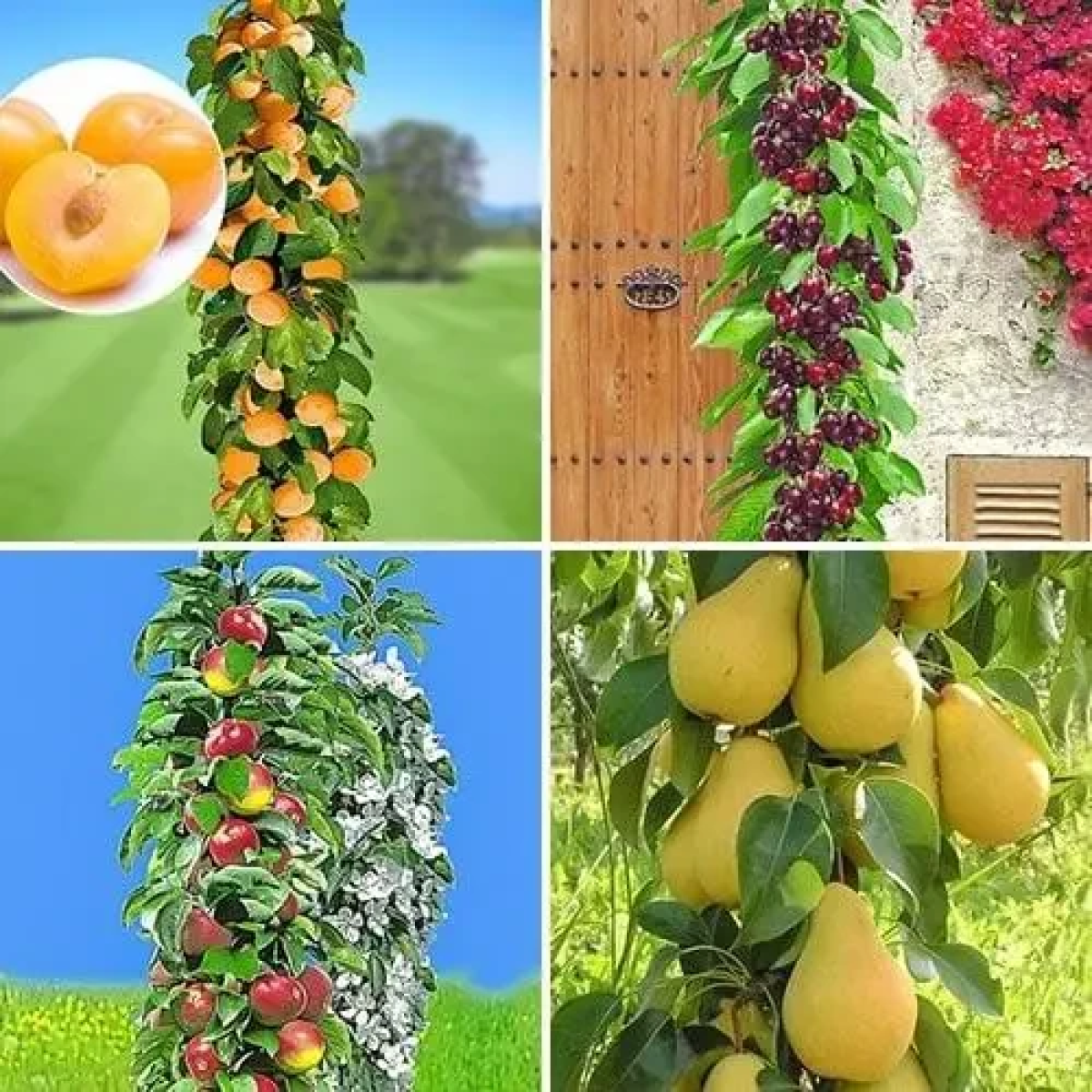 Комплект колоновидних дерев з 4-х сортів (груша Декора,яблуня Патріот,слива Мірабель,черешня Хелена)